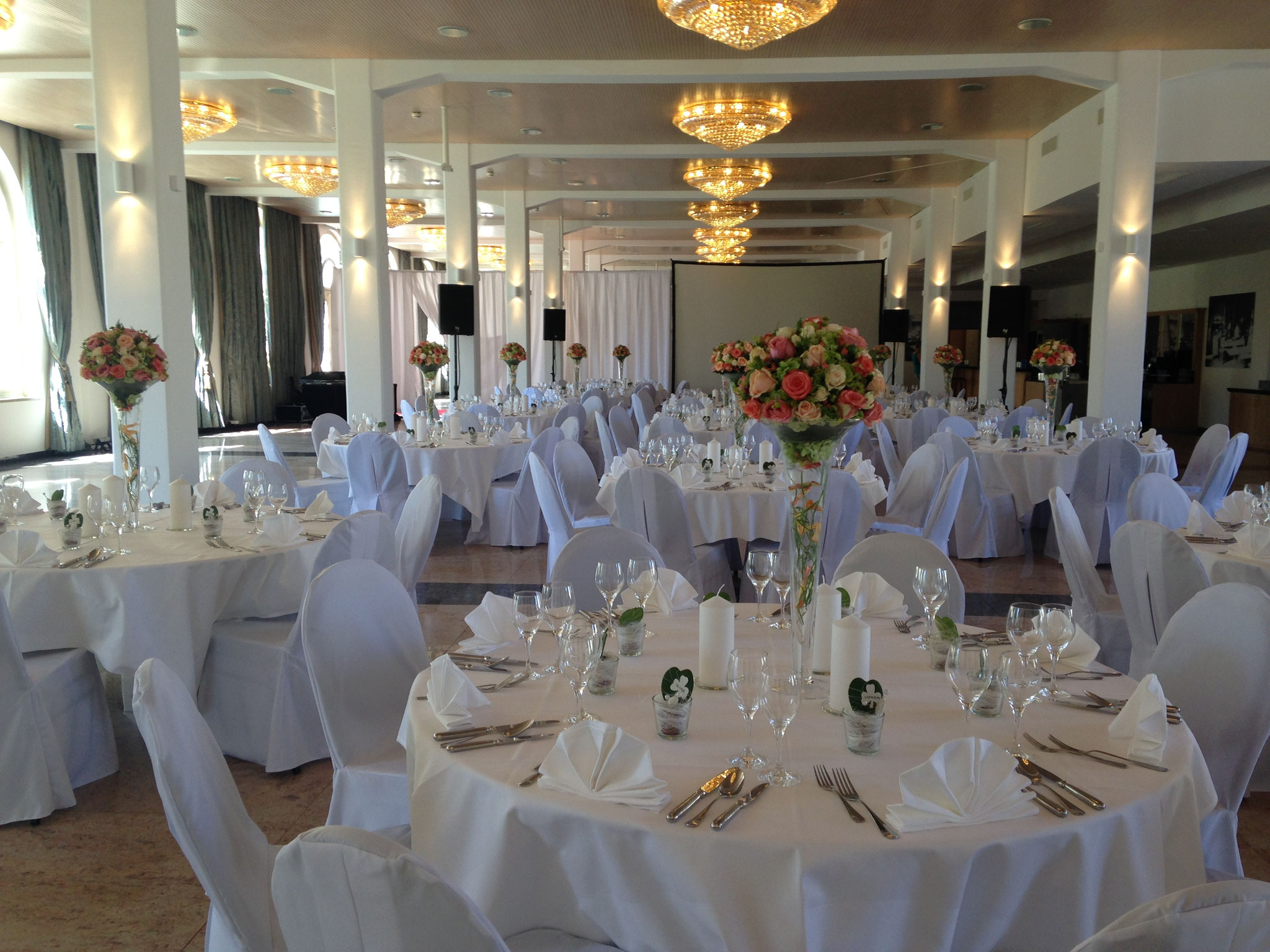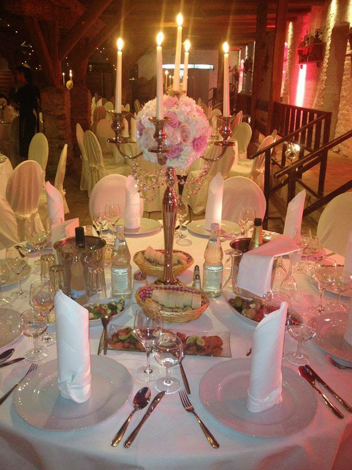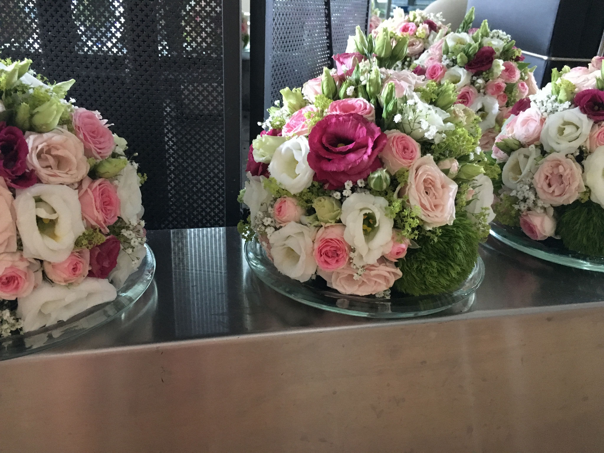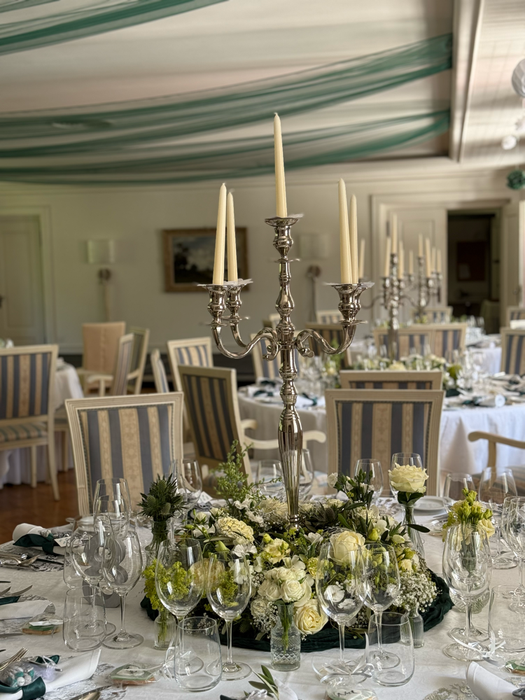 Perfekt abgestimmte Blumenarrangements lassen jede Hochzeitstafel festlich erstrahlen und schaffen ein feierliches Ambiente.
